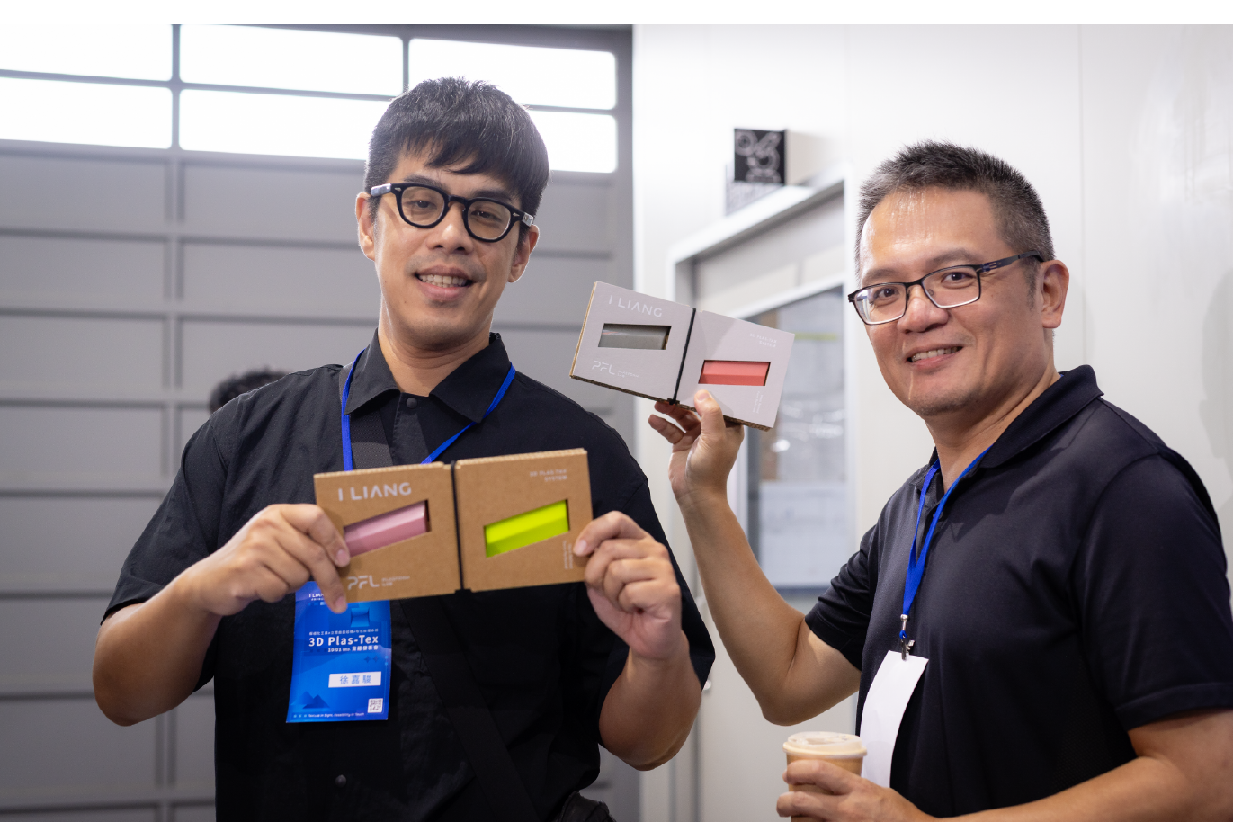 在實體發表會中,我們在入口處特別規劃了一區「展示與操作體驗桌」,以 3D PLAS-TEX 系列的模組樣品作為主體,也同時展出完整包裝版本,展示 3D PLAS-TEX 模組如何以品牌識別包裝系統呈現。